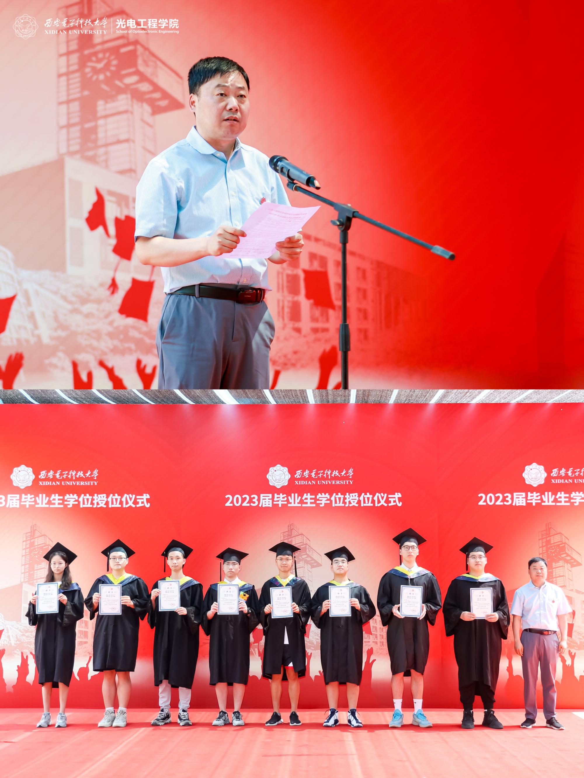 怀瑾握瑜,风禾尽起,一批莘莘学子通过刻苦学习圆满完成学业。学位评定委员会主席邵晓鹏教授宣读学位授予决议并送上深切寄语,他代表申博sunbet领导班子、全体教职工向毕业生们表示最热烈的祝贺,期望毕业生们离开校园后时刻铭记“厚德 求真 砺学 笃行”的西电校训,在勇敢的探索中感受世界的广阔和多彩,用执着的信念、过硬的本领,开创更加绚丽的人生。