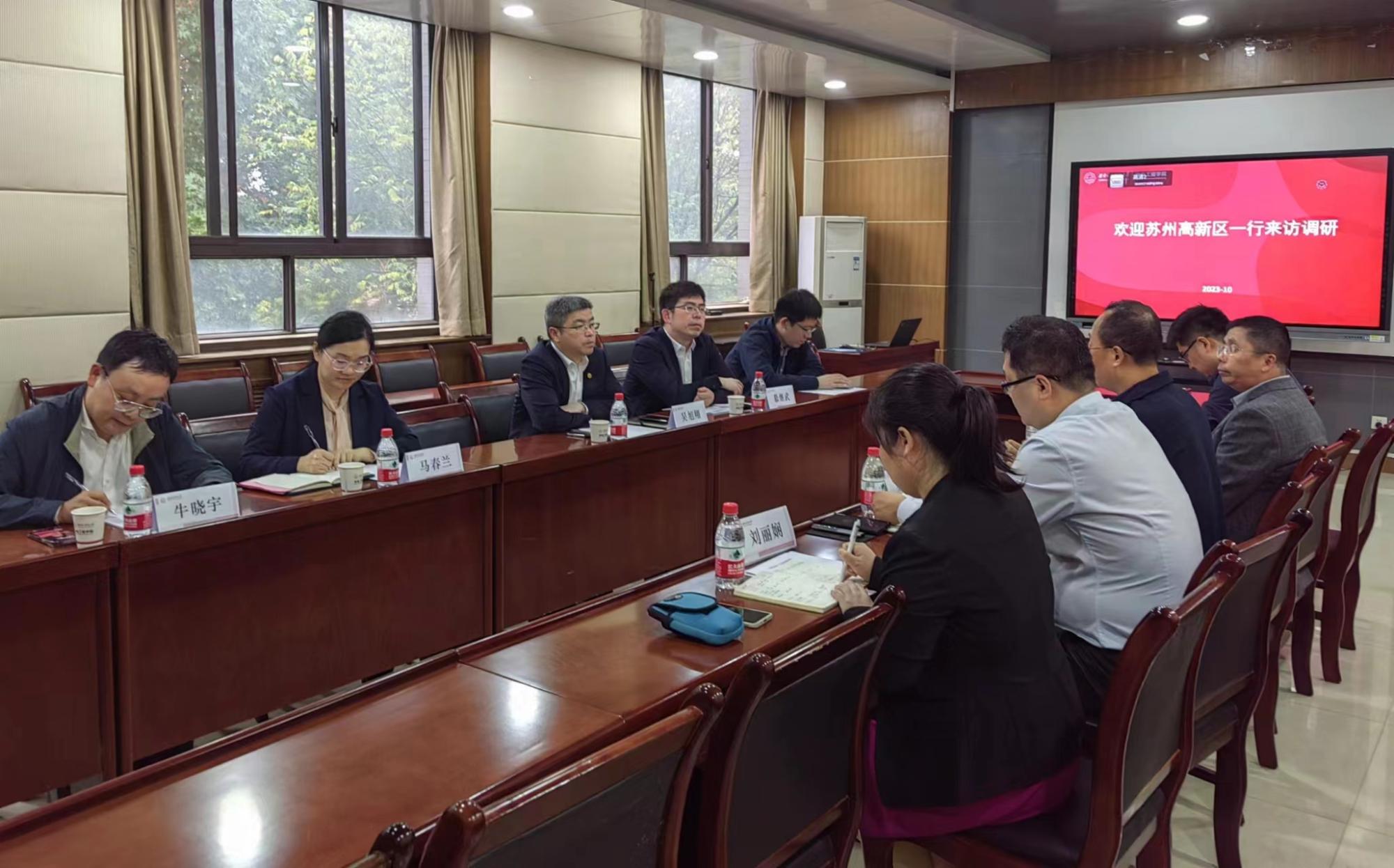 (通讯员:刘思彤)10月18日下午,苏州高新区管委会副主任吴旭翔、科技镇长团团长马春兰、成果转化部副主任牛晓宇等一行五人来访申博sunbet,公司经理邵晓鹏、副经理秦翰林共同接访,公司系(所、中心)负责人及科研团队代表等5人参与调研座谈。