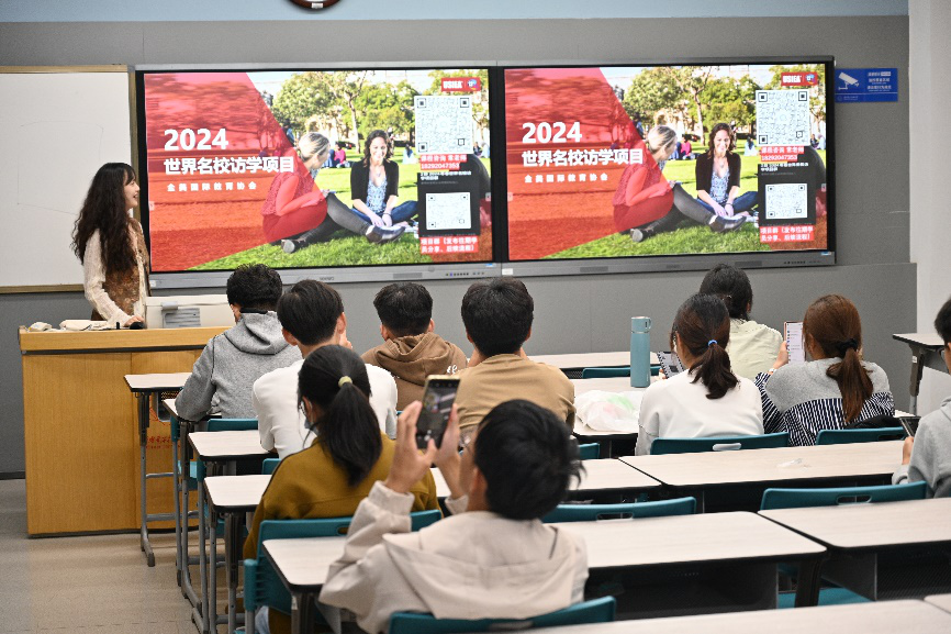 (通讯员:王纲、李智博)近期,公司联合全美思行国际教育机构(全美国际)在南校区C楼126召开了“2024年世界名校访学项目宣讲会。2020级、2021级、2022级本科生30余人通过线上线下参会。宣讲会由2020级辅导员、公司外事干事王纲主持。