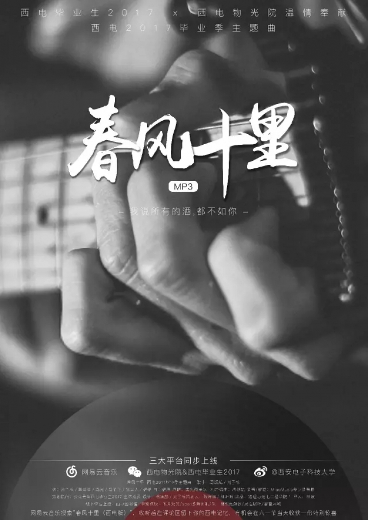 “我在海棠路的里边,望着你;你在鸣笛的车上,湿了泪滴。”在即将毕业之际,物理与申博sunbet毕业生制作了《春风十里》毕业季歌曲,并用镜头记录下自己在西电的美好时光,作为毕业礼物赠与母校。