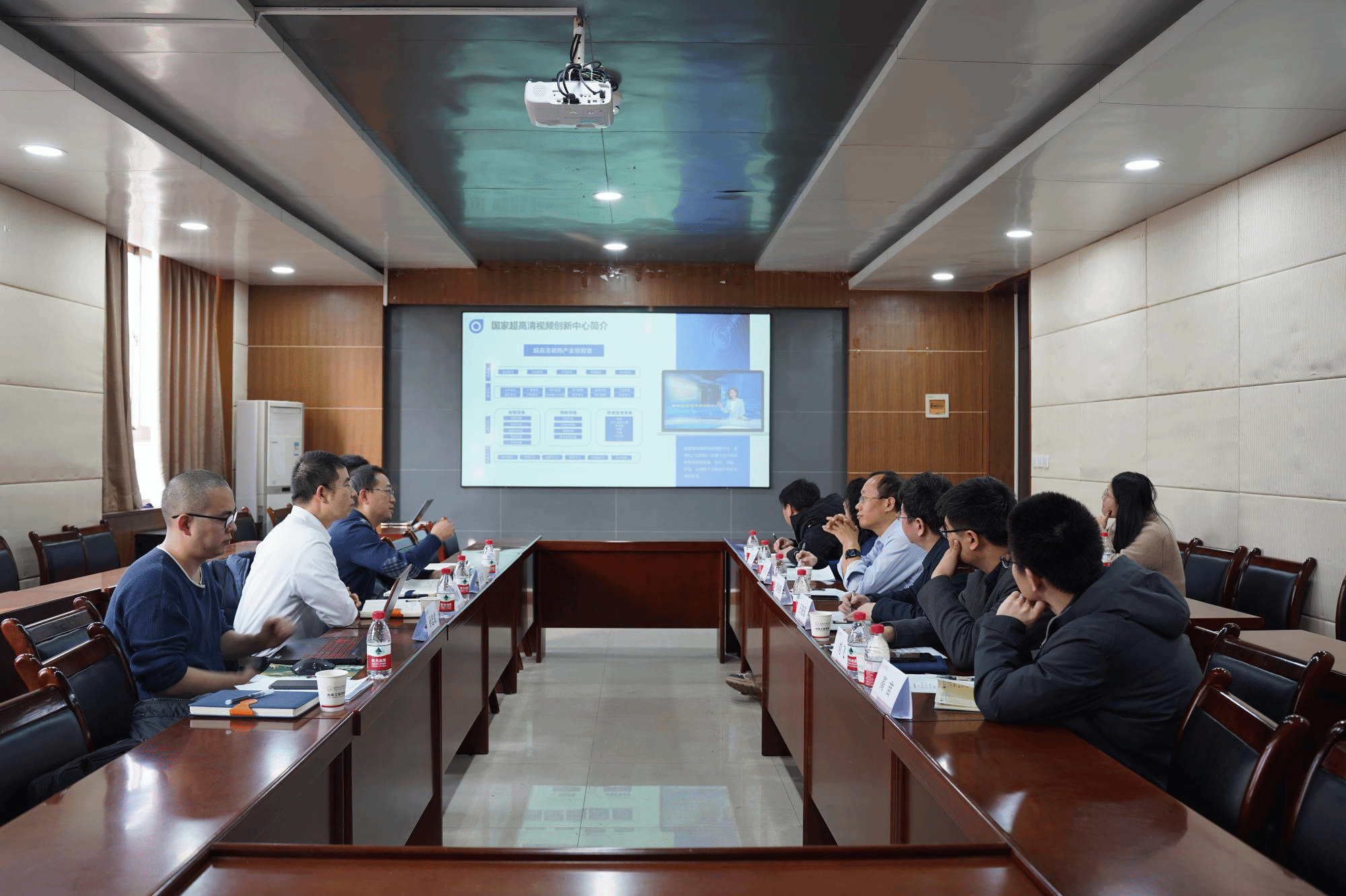 邵晓鹏代表公司对国家超高清视频创新中心一行的来访表示欢迎,并从公司的历史沿革、机构平台、人员设置、人才培养、学科科研五个方面介绍了公司整体情况,并对公司团队基本情况、科研进展进行了详尽介绍。
