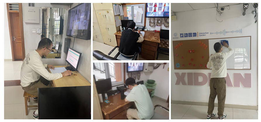 宿舍楼管体验岗的研究生每天固定时段分别前往对应宿舍楼协助楼管进行日常管理,督促员工遵守各项公寓管理规定、提醒员工清理宿舍门口的垃圾,做好借还钥匙登记、外来人员登记、设施损坏登记、报修等工作。房源信息核查岗的同学主要协助楼管进行宿舍空房源的清查、配合楼内做好退宿、换宿人员的相关登记,对已入住员工信息进行核对整改。