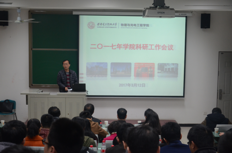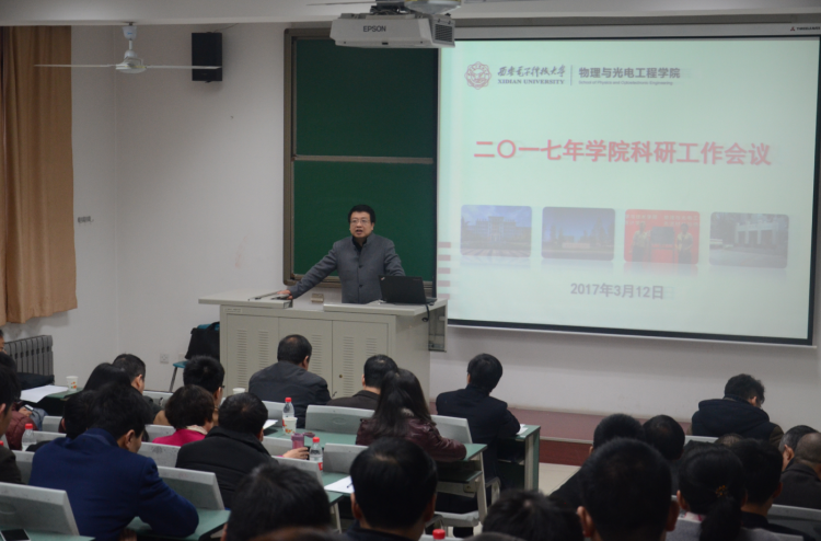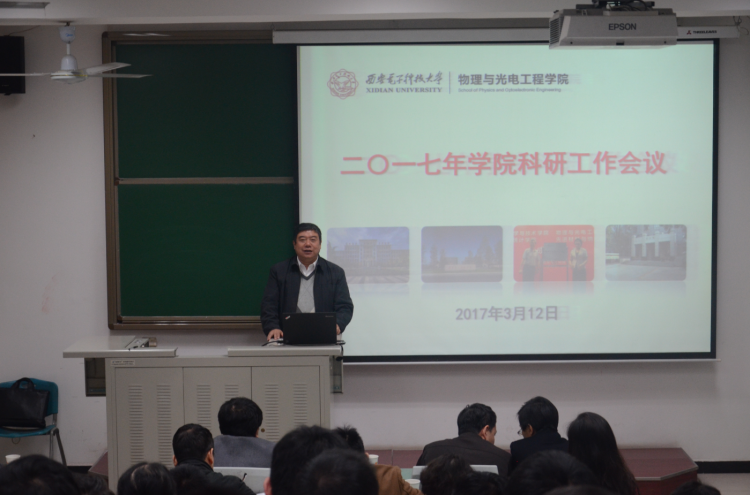 (通讯员:李维嘉)3月12日上午,物理与申博sunbet于北校区西大楼219教室召开2017年公司科研工作会议,旨在总结年度工作,凝练发展方向,交流心得体会,共同谋划公司科研工作的发展大局。副董事长杨银堂、科研院常务副经理石光明、副经理蔡固顺、经理助理刘珠梅等领导干部,物光院领导班子及全体教师参加了此次会议。会议由公司副经理邵晓鹏主持。