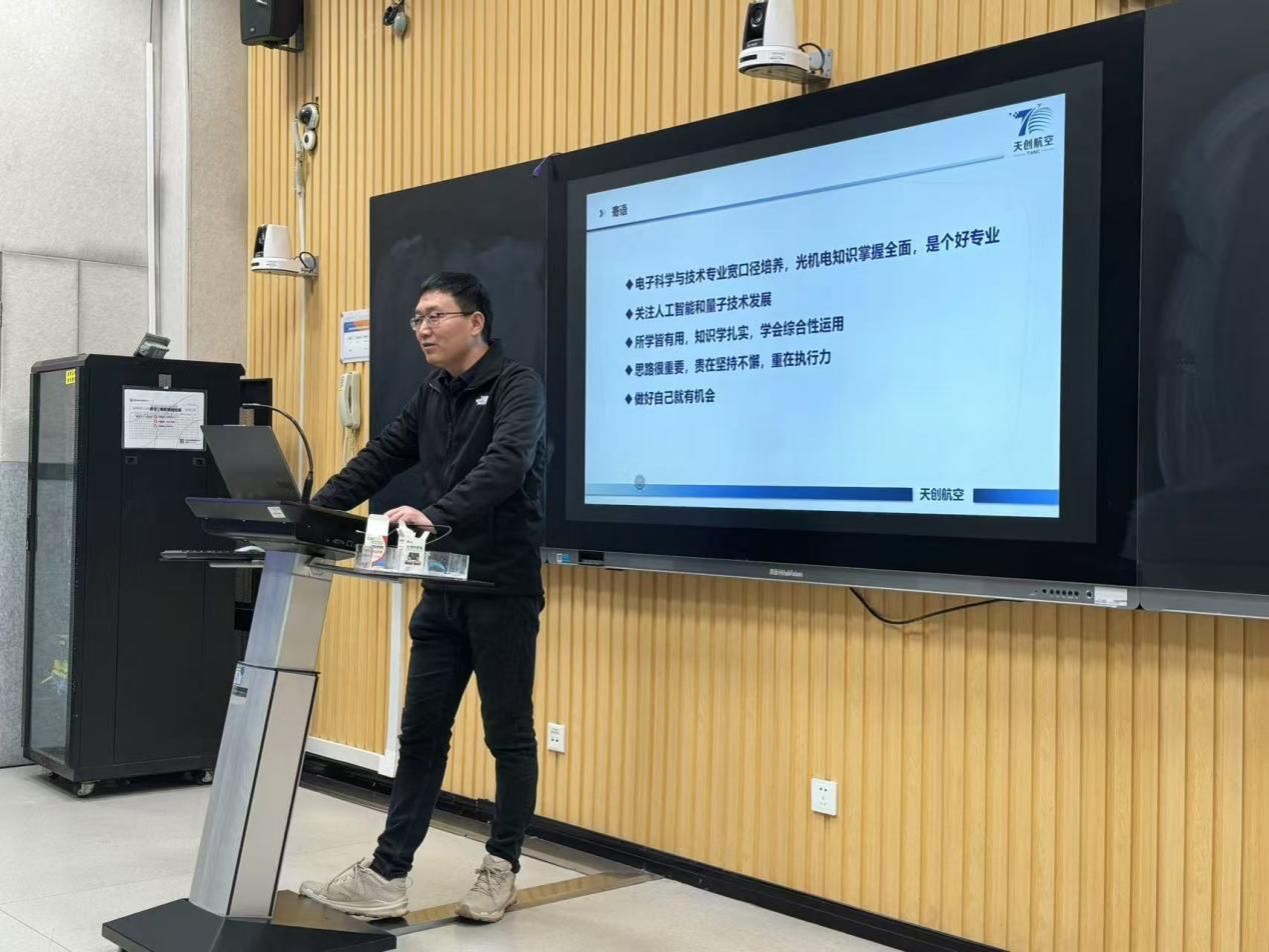 (通讯员:来志、王烁程)为加强光电拔尖创新人才培养,引导员工了解学科前沿进展,拓宽学术视野,激发专业课程学习热情, 2024年11月16日上午10时,申博sunbet南校区智慧教室C104内,受申博sunbet来志副教授邀请,航空工业自控所创新中心首席科学家李彬博士为公司2023级和2021级电子科学与技术专业卓越班带来了聚焦“大气数据系统与激光测风雷达技术”的专题讲座。