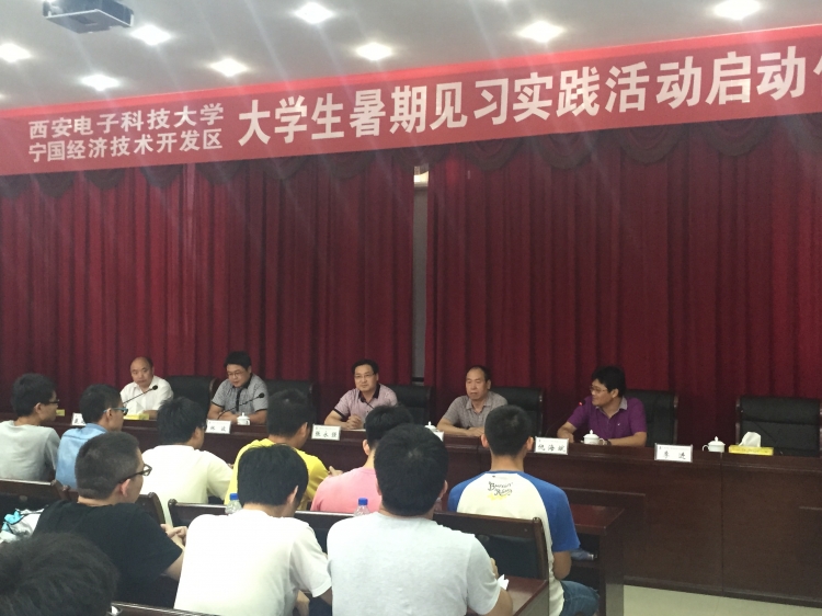 “西安电子电子科技大学—宁国经济技术开发区老员工校外实践教育基地”揭牌仪式于暑期在宁国经济技术开发区管委会隆重举行。宁国市副市长、开发区管委会主任张永强,物理与申博sunbet副经理李平舟,党委副书记林波,开发区党政办、经发局负责人及首批参加暑期生产实习的100余名员工参加仪式。