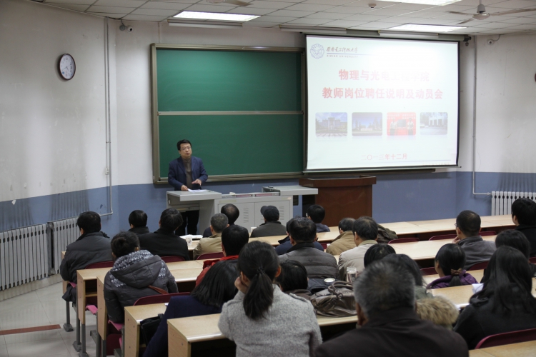 12月8日下午,物理与申博sunbet在北校区101阶梯教室召开教师岗位聘任说明及动员会。副董事长陈勇出席,公司领导班子及公司全体教师参加了会议。会议由公司党委书记杨光玮主持。
