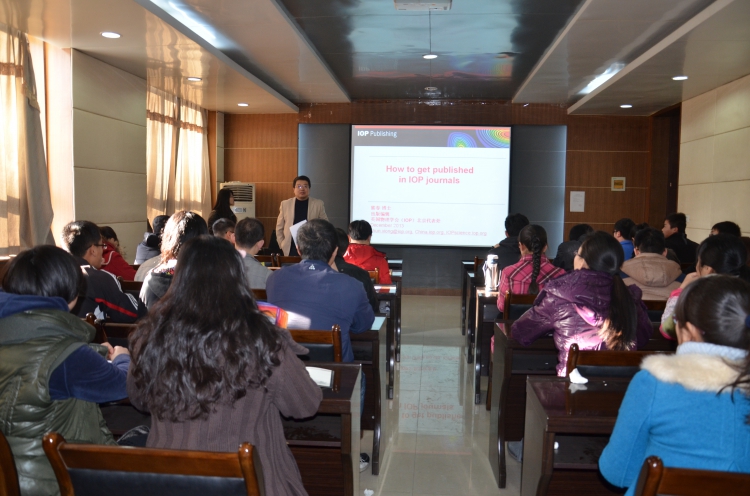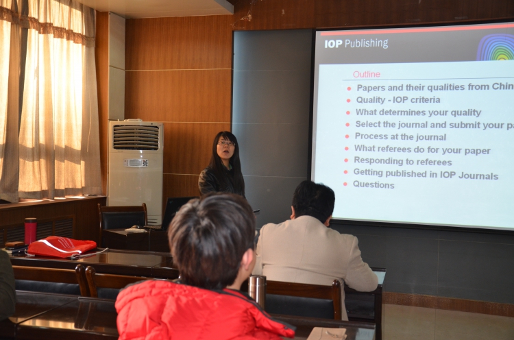 首先,熊春博士为大家介绍了英国物理学会的情况。接着,熊博士从发表论文的流程、IOP审稿程序、IOP的评价标准、撰写论文技巧、投稿期刊的选择、审稿人的职责等方面做了详细而又深入的讲解,在场的研究生和青年教师们感到收益匪浅,在今后的投稿过程中能够避免不必要的错误。最后,熊春博士还根据国内投稿的实际情况,给公司员工提出了很多非常实用的建议。