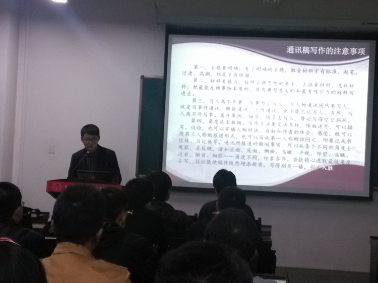 (通讯员 贾丹阳,洪邑晖)11月7日晚7点,物理与申博sunbet员工事务委员会在E楼III区315学术报告厅举行了员工干部通讯稿写作培训,由院员工事务委员会洪邑晖学长主讲,到场的有公司各组织秘书处成员和2013级各班通讯员。