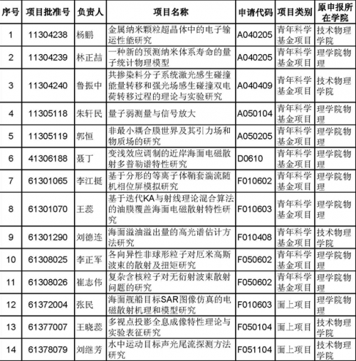日前,国家自然科学基金委公布了2013年国家自然科学基金资助项目最终评审结果,原技术物理公司和理公司物理系申报项目中共14个项目获资助。其中,物理与申博sunbet共有面上项目3项,获资助经费253万元;青年科学基金项目10项,获资助经费245万元。