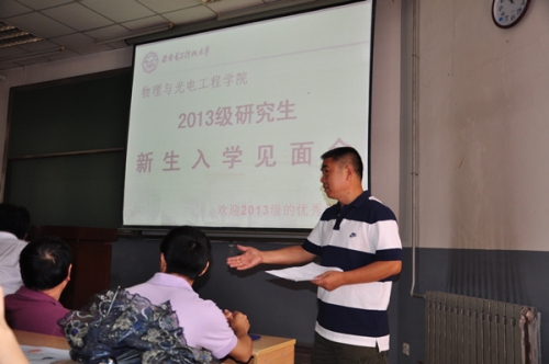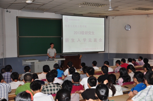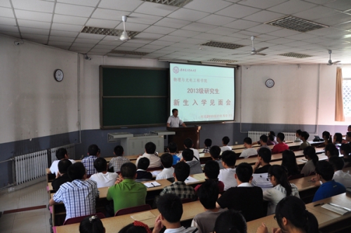 8月29日上午11点整,物理与申博sunbet在北校区教学楼101教室召开2013级研究生新生入学见面会,公司筹备领导小组组长郭立新,以及筹备领导小组成员杨光暐、李平舟、周慧鑫到场与2013级研究生新生见面,并对大家来公司继续深造学习表示热烈的欢迎。