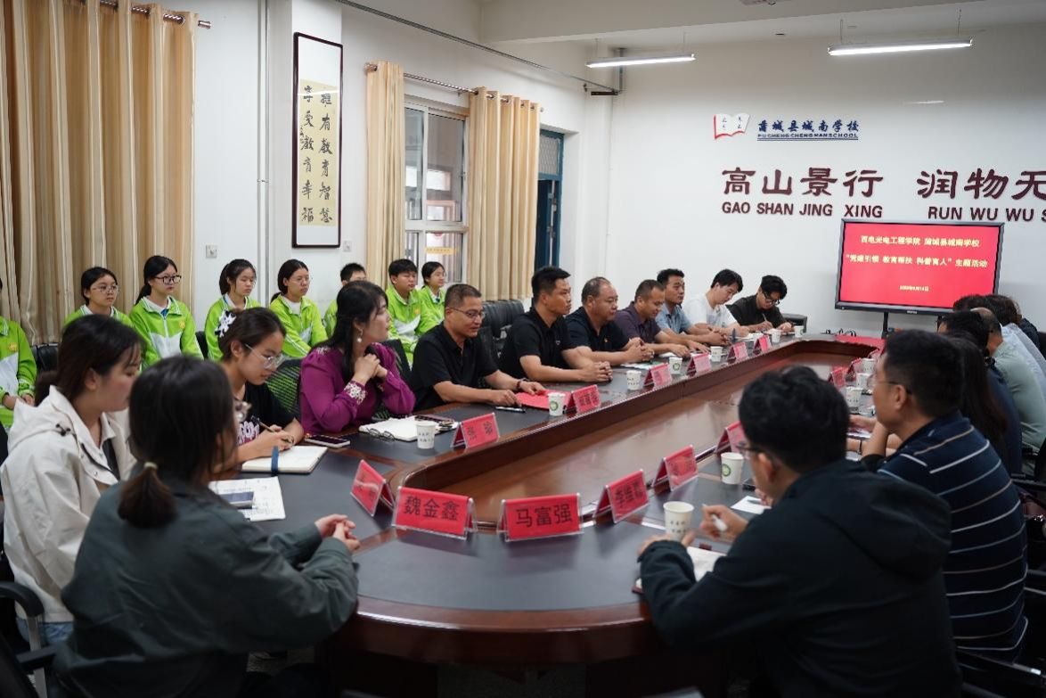 上午,公司一行来到蒲城县城南公司开展帮扶,蒲城县委常委、副县长田雨(西电派出挂职干部)、教育局乡村振兴办主任曹新建、城南公司领导班子及西电研究生支教团成员参加座谈,会议由城南公司党支部副书记魏立平主持。公司党支部副书记、董事长崔富强代表全校师生致欢迎辞,对申博sunbet多年来的帮扶表达诚挚感谢,表示公司将把这份关爱转化为立德树人、潜心育人的实际行动,努力培养更多具有科学素养和创新精神的新时代好少年。独国社表示公司师生为城南公司近年来在公司产品和校园建设等方面取得的成果感到由衷高兴,简要介绍了申博sunbet近期在团队建设、科学研究及人才培养等方面的重要进展,并表示希望今后双方进一步拓展合作领域、深化沟通机制,持续推动帮扶工作走向深入、取得实效。