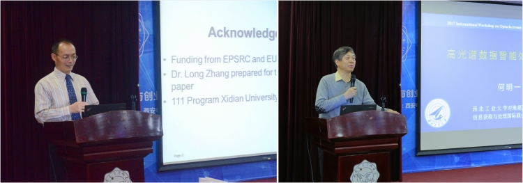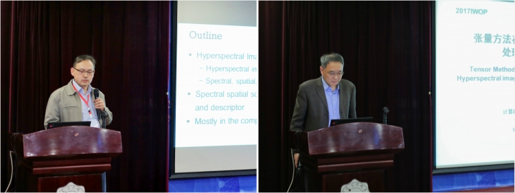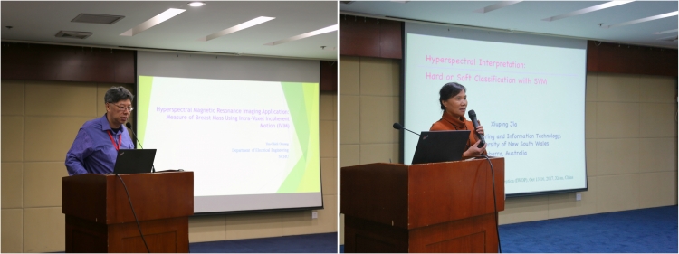 15号下午,杨廷梧教授和Shih-Yu Chen助理教授分别做了题为“Experimental test system of integration for sky, space and ground”和“Applications of Hyperspectral Image Processing Techniques”的报告,讲解了空天地一体化试验测试系统和高光谱图像处理技术的应用。
