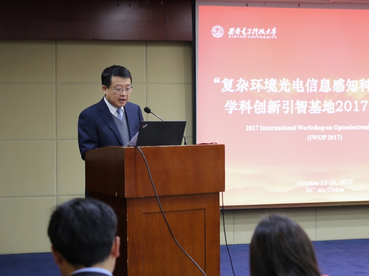 随后,基地负责人、物理与申博sunbet执行经理郭立新教授上台致辞。他首先代表基地工作组的全体成员对公司的大力支持、学者的辛勤付出表示感谢。他谈到,“复杂环境光电信息感知科学与技术”学科创新引智基地面向国家光电工程领域重大战略需求,依托智能感知与图像处理、新型激光器件与光信息处理、无线电物理三个省部级实验室建立,致力于解决未来复杂环境光电信息感知与处理中的关键科学问题。通过采用“引进、吸收消化、再创新”的战略思路,引进海外著名学者和高层次的研究人员,培养国际化的高层次人才和创新团队,深入开展高水平的国际科研交流与合作,力争打造一个在国内具有示范性的战略性、国际化的光电信息感知与处理领域的科学研究、高层次人才培养和国际学术交流的合作创新基地。他希望通过学术年会这一交流平台,深入研讨,增进友谊,共谋发展,将“复杂环境光电信息感知科学与技术”学科创新引智基地打造成为光电信息感知与处理领域内具有国际影响力的学术交流平台。