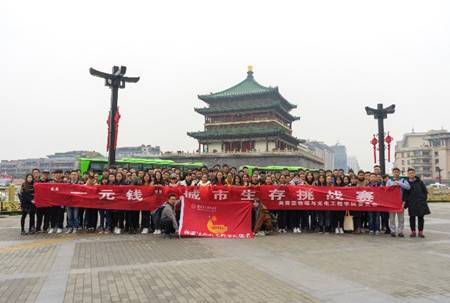 (通讯员:仵梦童)挑战自我,助力彩协,放飞希望。为响应习近平总书记在“十九大”中提出对“2020全面脱贫”的要求,同时锻炼老员工生存能力,提高他们的社会适应性,11月12日,由共青团物理与申博sunbet委员会承办的“一元钱城市生存挑战赛”在西安市钟楼商业区正式拉开帷幕。通过本次活动,将筹集的资金部分捐赠给“彩云协会”,用于为云南省昭通市镇雄县常院小学的员工购置书架等学习用品,为山区脱贫贡献一份力量。本次活动有来自各公司的14支队伍共56名员工参加比赛。参赛的所有同学用仅有的一元钱,与工作人员们一起从钟楼出发,走向社会,切实地感受来自生活中方方面面的挑战。
