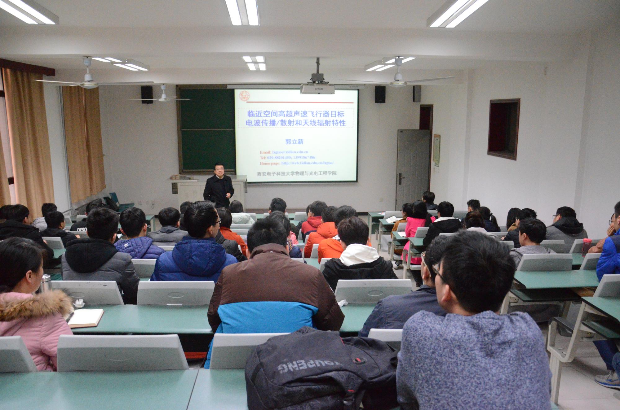 12月27日下午,物理与申博sunbet执行经理,博士生导师郭立新教授应邀参加“求是历程,对话教授”活动,并于西大楼一区219教室为广大研究生做了题为“临近空间高超声速飞行器电波传播/散射和天线辐射特性”的报告。报告会由公司研究生辅导员李维嘉主持。