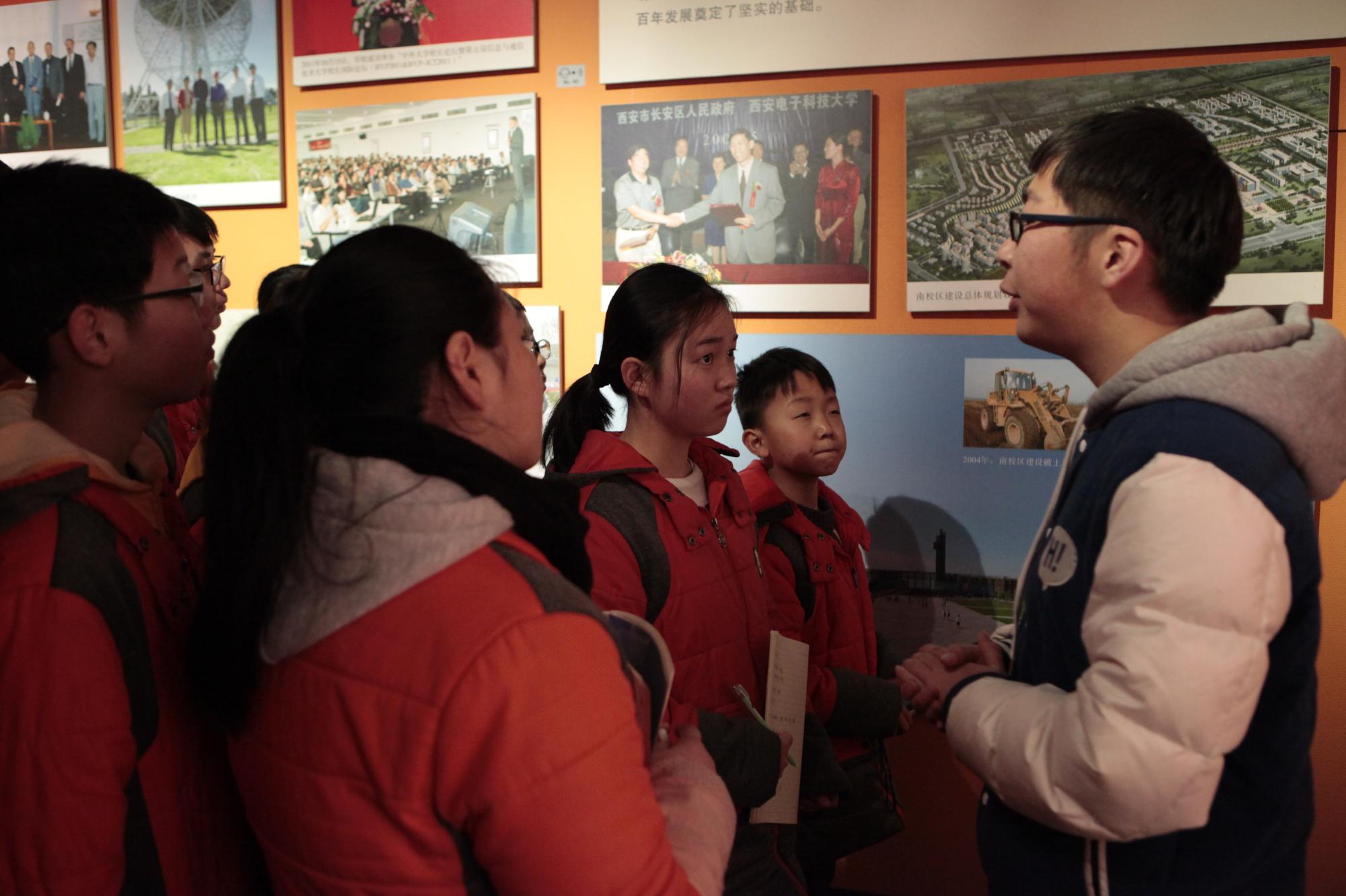 参观活动在“全心全意为人民服务”的主体雕塑前正式展开,工作人员向来访师生介绍了“全心全意为人民服务”的题词来历,以及十根立柱雕塑上代表公司发展的奋斗之路和学科之基。在校史馆,来访师生进一步了解申博sunbet的办学历程。毛主席、朱总司令等老一辈革命家的题词、一幅幅老照片引来大家纷纷关注,“半步电台起家”“长征路上办学”的生动故事更得到了大家对西电光荣校史的由衷赞叹。
