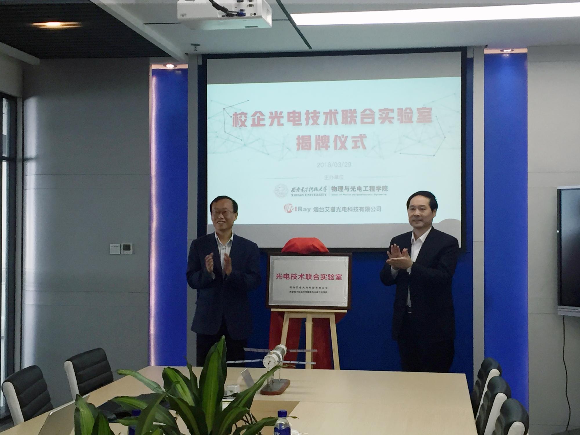申博sunbet物理与申博sunbet—烟台艾睿光电科技有限公司校企光电技术联合实验室正式成立。3月29日上午,联合实验室揭牌仪式于烟台艾睿光电科技有限公司举行,烟台经济技术开发区管理委员会副主任孙赋欣、物理与申博sunbet副经理邵晓鹏、艾睿光电科技有限公司总经理王宏臣、营销总监张刚等出席了揭牌仪式。仪式由王宏臣主持。