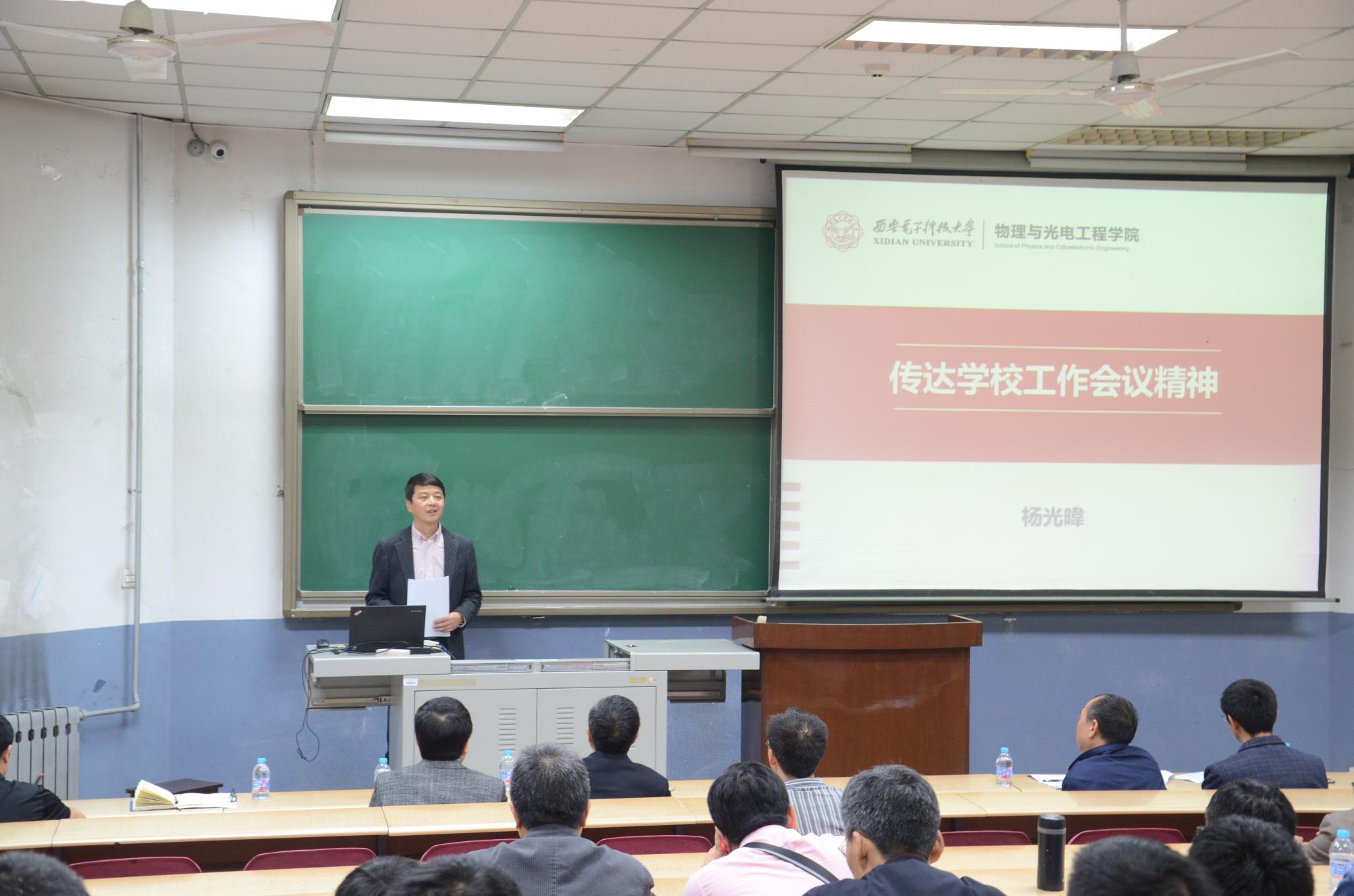 4月17日晚,物理与申博sunbet于北校区J-101教室召开2018公司工作会议,副董事长李建东出席会议,公司领导班子、140余名教职工参加了会议。会议由公司党委副书记林波主持。