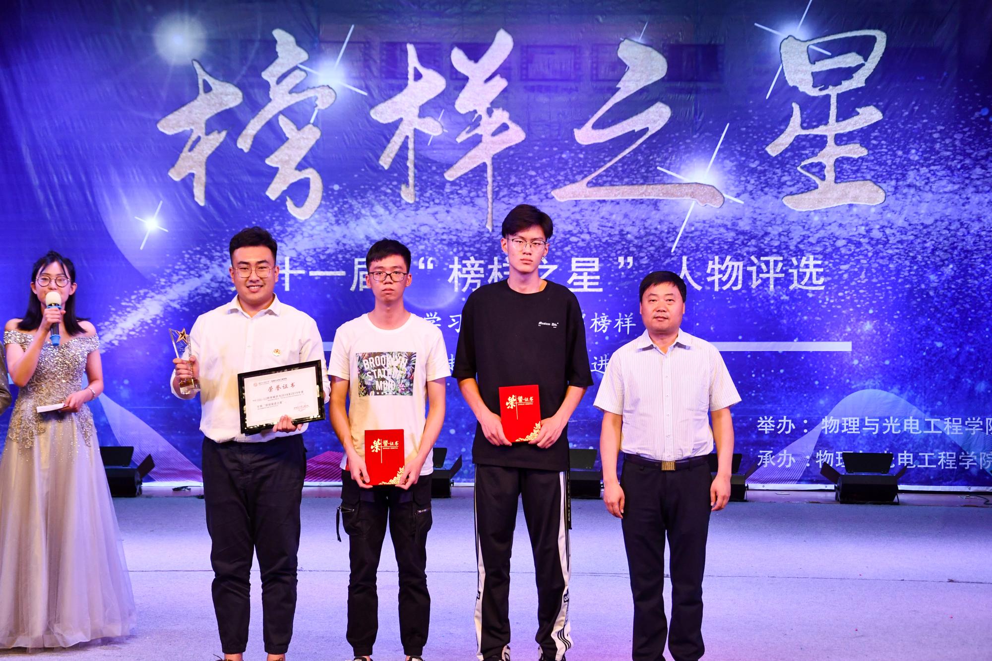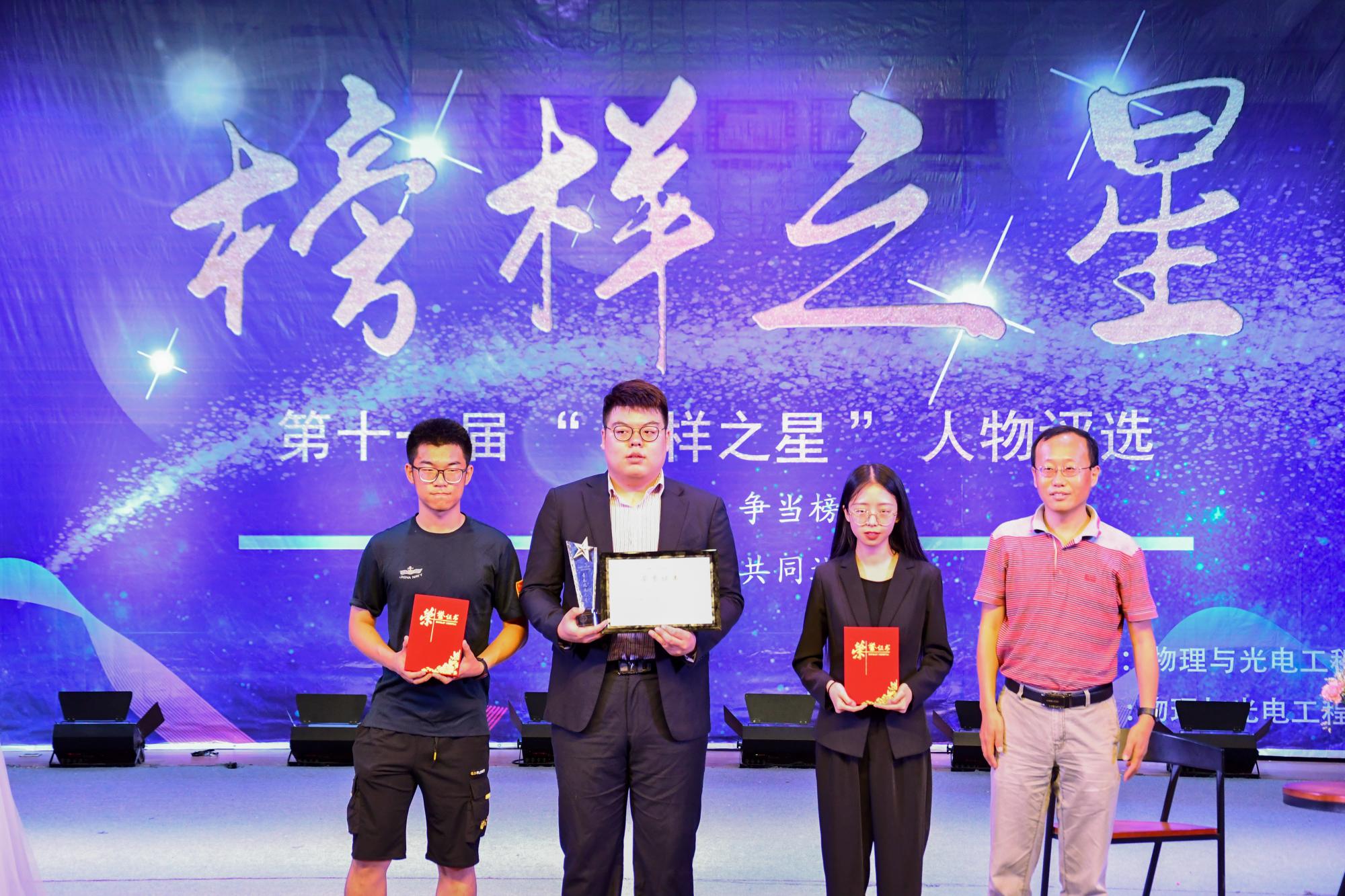 (通讯员:黄尉东 洪成超 谢文茜)6月2日晚七时,物理与申博sunbet“璀璨星光,榜样力量”第十一届“榜样之星”人物评选颁奖典礼在南校区老员工活动中心成功举行。物理与光电工程公司党委书记独国社、执行经理邵晓鹏、组织员陈峰、党委副书记林波、副经理魏兵、校团委副书记于志斌等嘉宾老师莅临晚会,公司青年教师代表、全体辅导员与近300名本科生共同参加了本次活动。