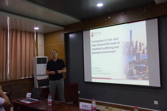 9月7日上午,四位学者在西大楼Ⅲ-412报告厅分别作了题为“Comparison of mid- and near-infrared link losses in simulated scattering and turbulent environment”、“飞秒强激光驱动的阿秒脉冲光源”、“Hydrogen doped MoO3 in biological sensing applications”及“Perovskite oxides for optical modulator: design and optimization”的学术报告,涵盖光注入、光传输、阿秒物理、生物传感、钙钛矿结构铁电薄膜物理与化学等多个学科方向。报告会现场学术气氛热烈,大家就研究方向的相关问题进行了活跃的互动与交流。