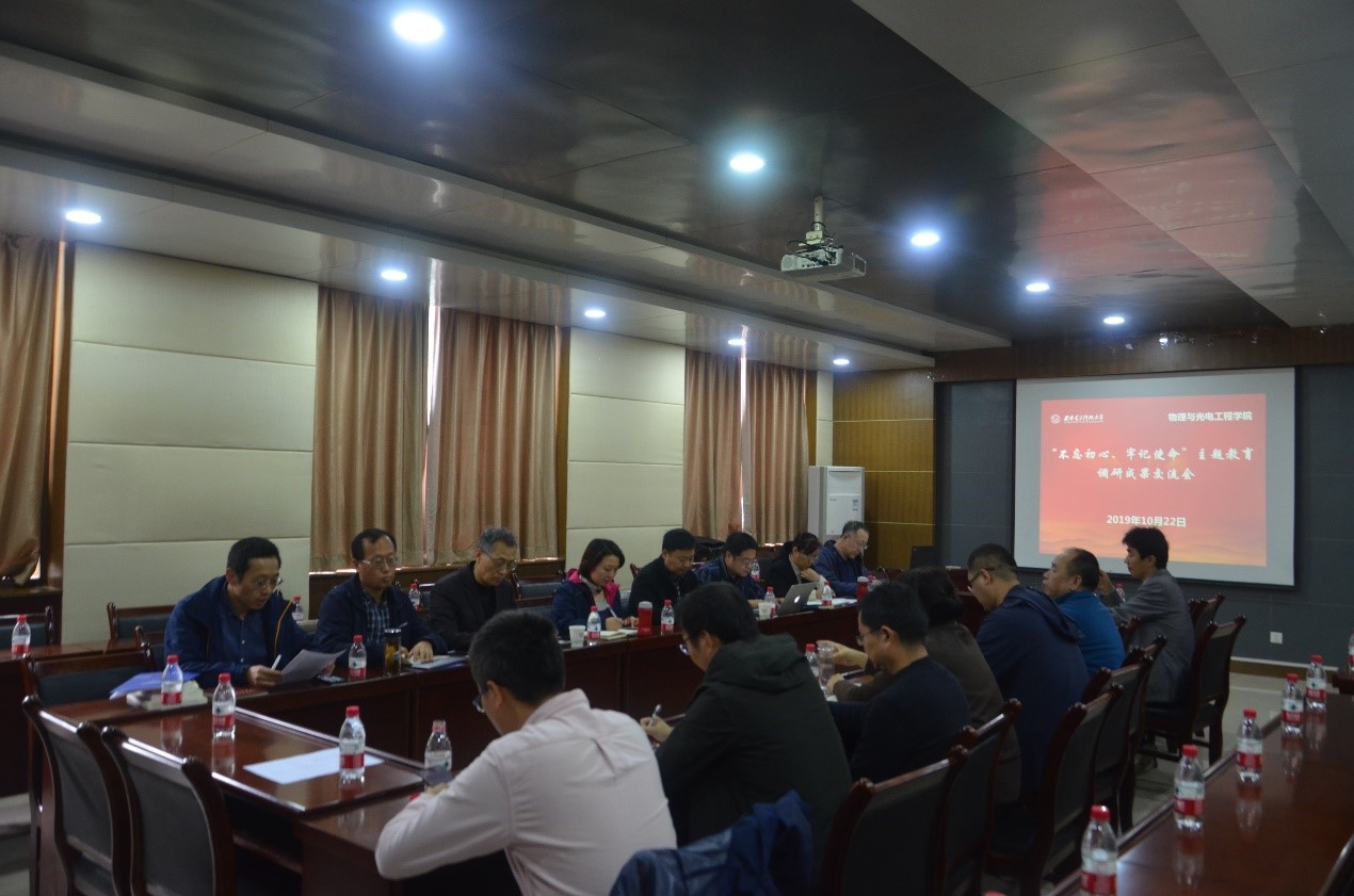 根据物理与公司开展“不忘初心、牢记使命”主题教育的总体安排,公司于10月22日下午,在西大楼412会议室召开主题教育调研成果交流会,公司领导班子成员分别结合各自调研题目就调研收获及思考进行了汇报交流。公司两委委员、组织员、系所负责人、教工党支部书记等参加了会议,公司主题教育指导组成员宁静到会指导。会议由党委书记独国社主持。