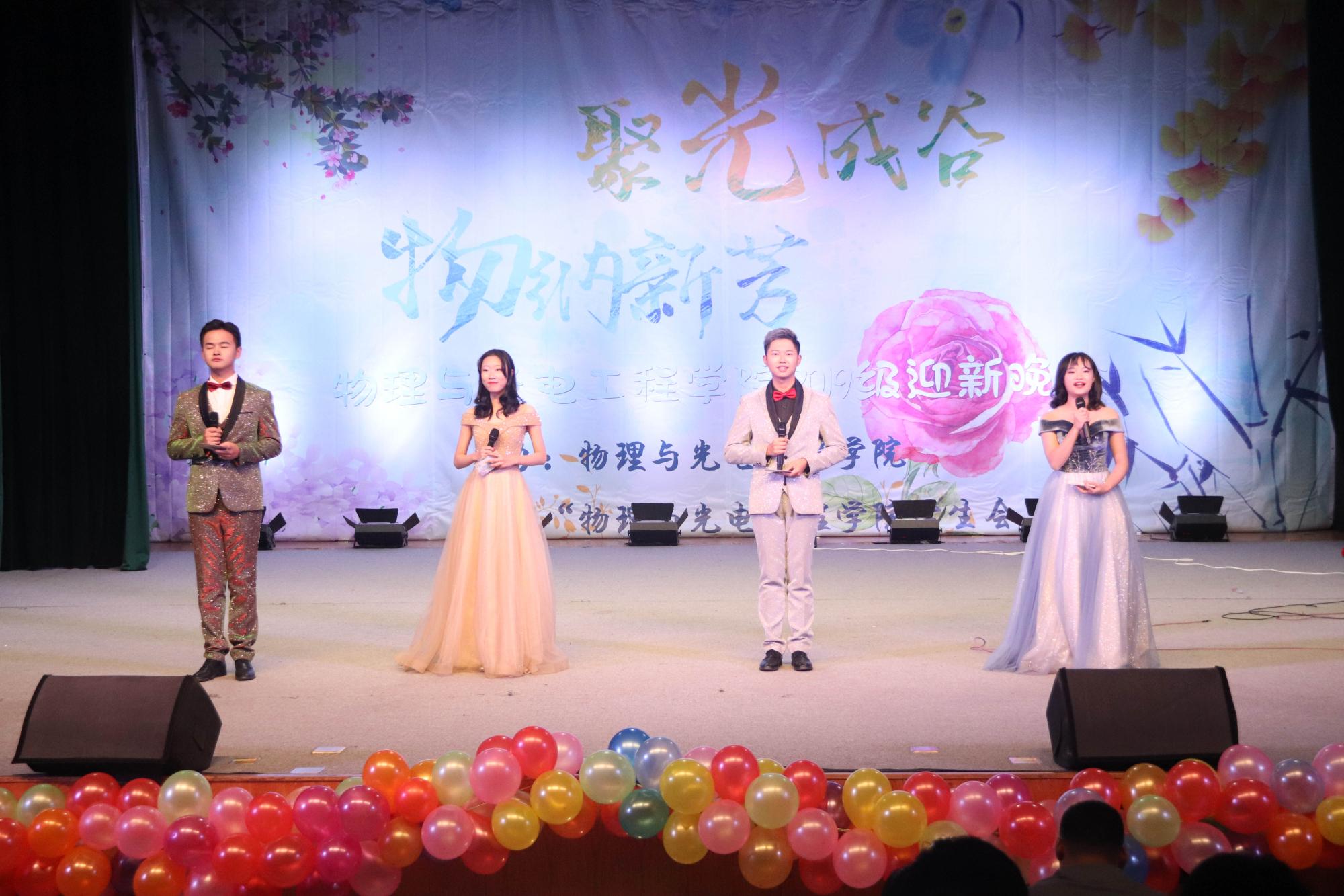 (通讯员:曹欣怡 刘超)11月10晚六时,物理与申博sunbet“聚光成谷,物纳新芳”2019级迎新晚会在南校区老员工活动中心小剧场举行。公司党委书记独国社、执行经理邵晓鹏、组织员陈峰、党委副书记林波、副经理辛红、各年级辅导员、专任教师以及全体2019级本科生欢聚一堂,共同欣赏这场视听盛宴。