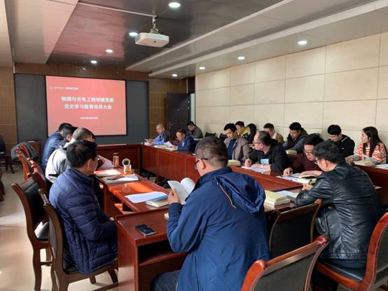 3月23日,物理与申博sunbet于北校区西大楼三区412会议室召开党史学习教育启动会,会议下发了公司党史学习教育实施方案并进行了工作部署,公司班子成员、两委委员,组织员、师生党支部书记共27人参加了会议。会议由公司党委书记独国社主持