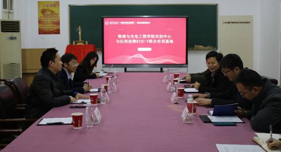 【通讯员姜萌】2021年12月1日下午,物理与申博sunbet双创中心与南京沁恒微电子股份有限公司联合实训基地挂牌仪式在南校区F楼215会议室举行,南京沁恒微电子股份有限公司技术总监兼RISC-V研究院经理杨勇,空间科学与技术公司党委书记兼创新创业公司副经理朱伟、校团委副书记尹鹏、物光公司原副经理李平舟、物光公司双创中心负责人武福平及相关辅导员参加了会议,仪式由物光公司党委副书记黄军荣主持。