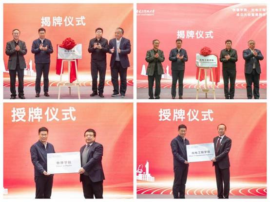 (通讯员 樊晓 张乐平)3月1日下午,申博sunbet物理公司、申博sunbet成立大会暨揭牌仪式在北校区科技楼报告厅举行。陕西省科学技术厅副厅长赵怀斌、陕西省人民政府学位委员会秘书长袁宁、中国科公司西安光学精密机械研究所所长马彩文等10余位嘉宾出席仪式。国家自然科学基金委员会副主任谢心澄、原中国科公司物理研究所所长王玉鹏等9位院士以及20余所兄弟高校和单位的领导专家以线上或线下的方式参加仪式。公司全体校领导、相关职能部门、公司负责人、相关一级学科及学科方向负责人、教师和员工代表共同参加了仪式。仪式由党委副书记杨银堂主持。
