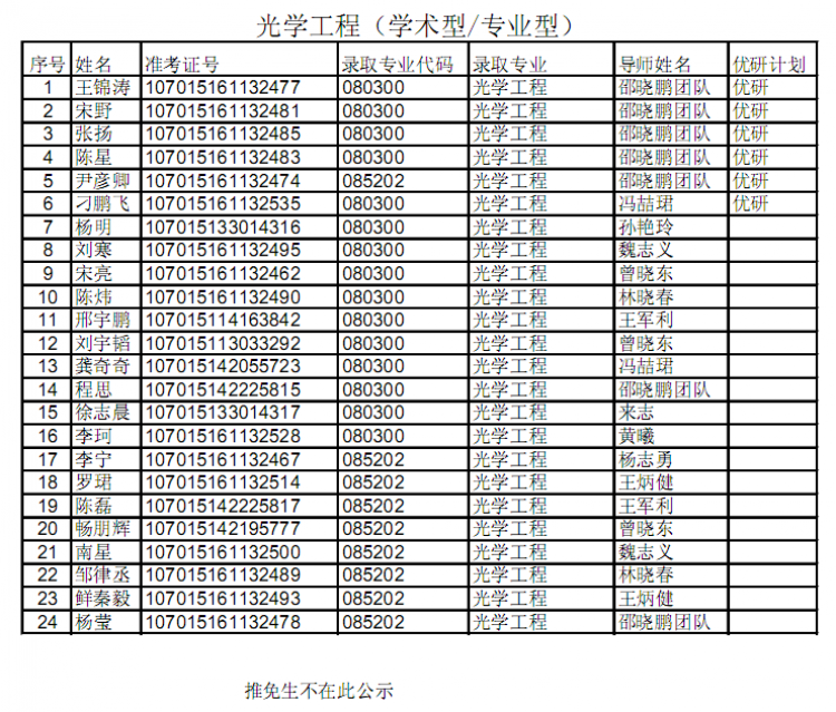 【公示】物理与2015级硕士研究生拟录取名单公示