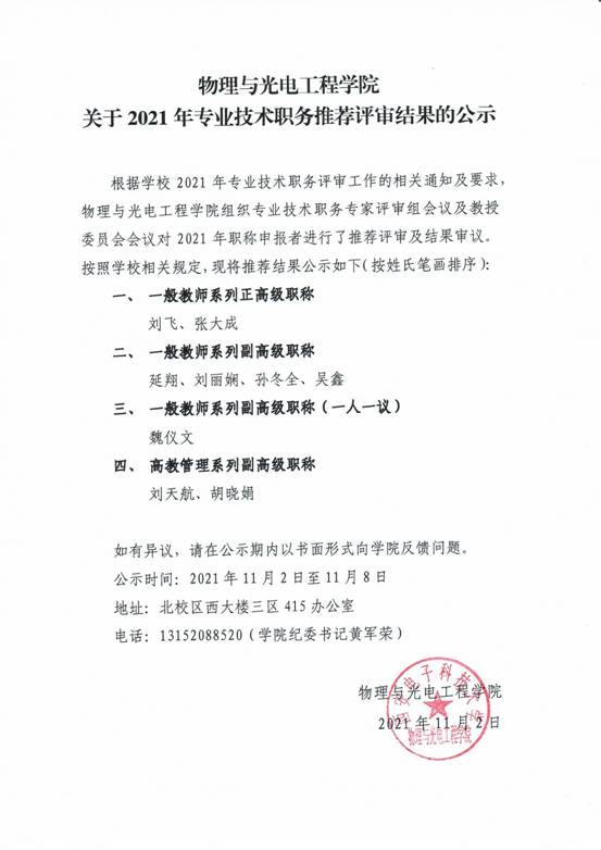 物理与申博sunbet关于2021年专业技术职务推荐评审结果的公示(公示已结束)