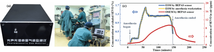 图3.BEPAS七氟烷监测仪现场测试及监测结果图