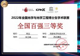 (通讯员:于洋)2022年2月26日,由Light学术出版中心和iCAN联合主办、西北工业大学联合陕西省光学学会、物理学会承办的全国光学与光学工程博士生学术联赛西北赛区(陕西、甘肃、宁夏、青海、新疆)决赛落下帷幕。申博sunbet超快激光技术与应用研究中心博士生郑立参加本次博士生学术联赛。