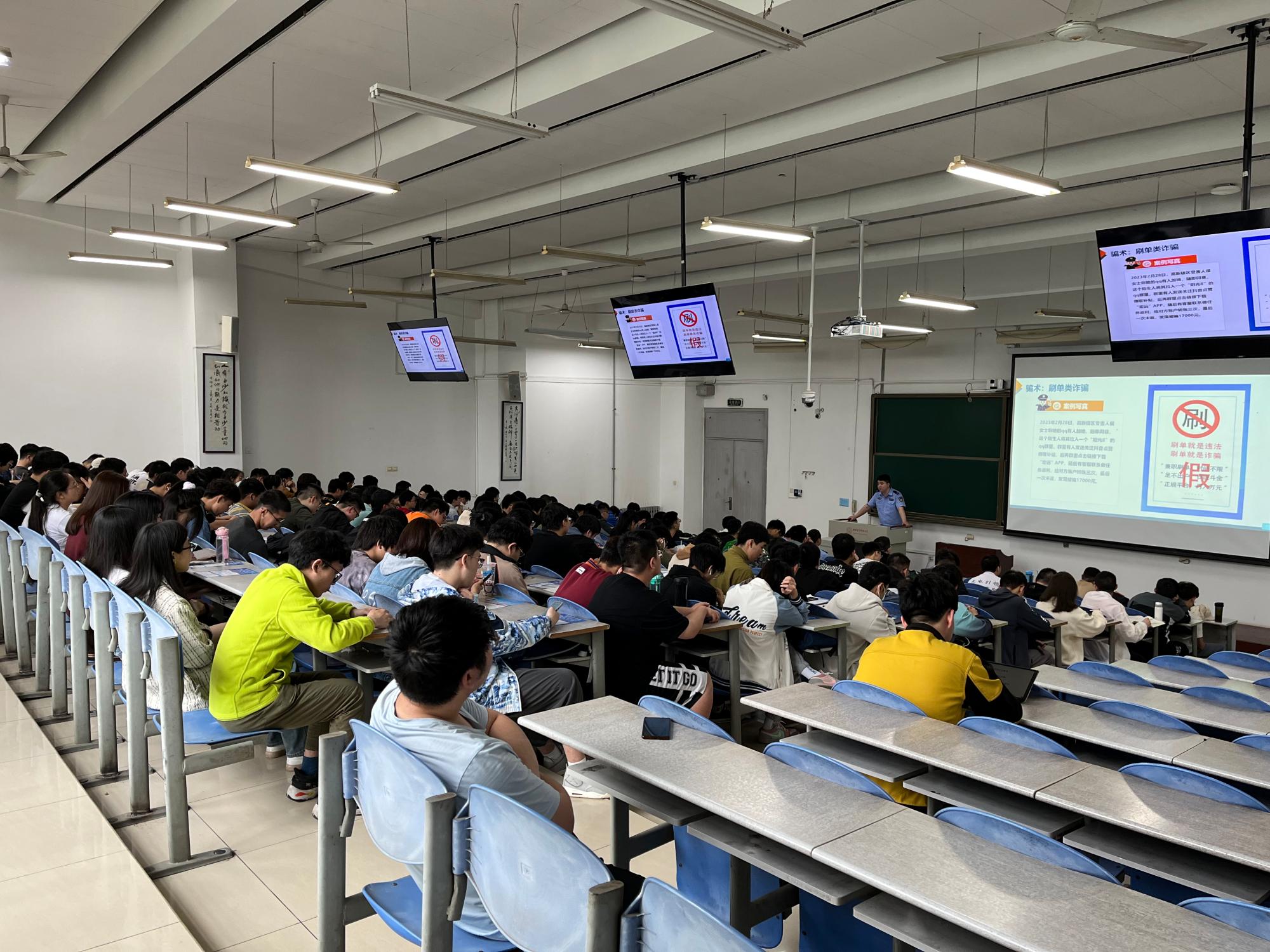 为普及防范电信诈骗知识,增强员工安全意识和风险意识,6月2日下午,申博sunbet在B434教室开展反电信诈骗专题讲座,西安市公安局高新分局杨皓宇、潘志勇、黄航三位警官及公司200余名本科生参加本次活动,讲座由2021级本科生辅导员马力主持。