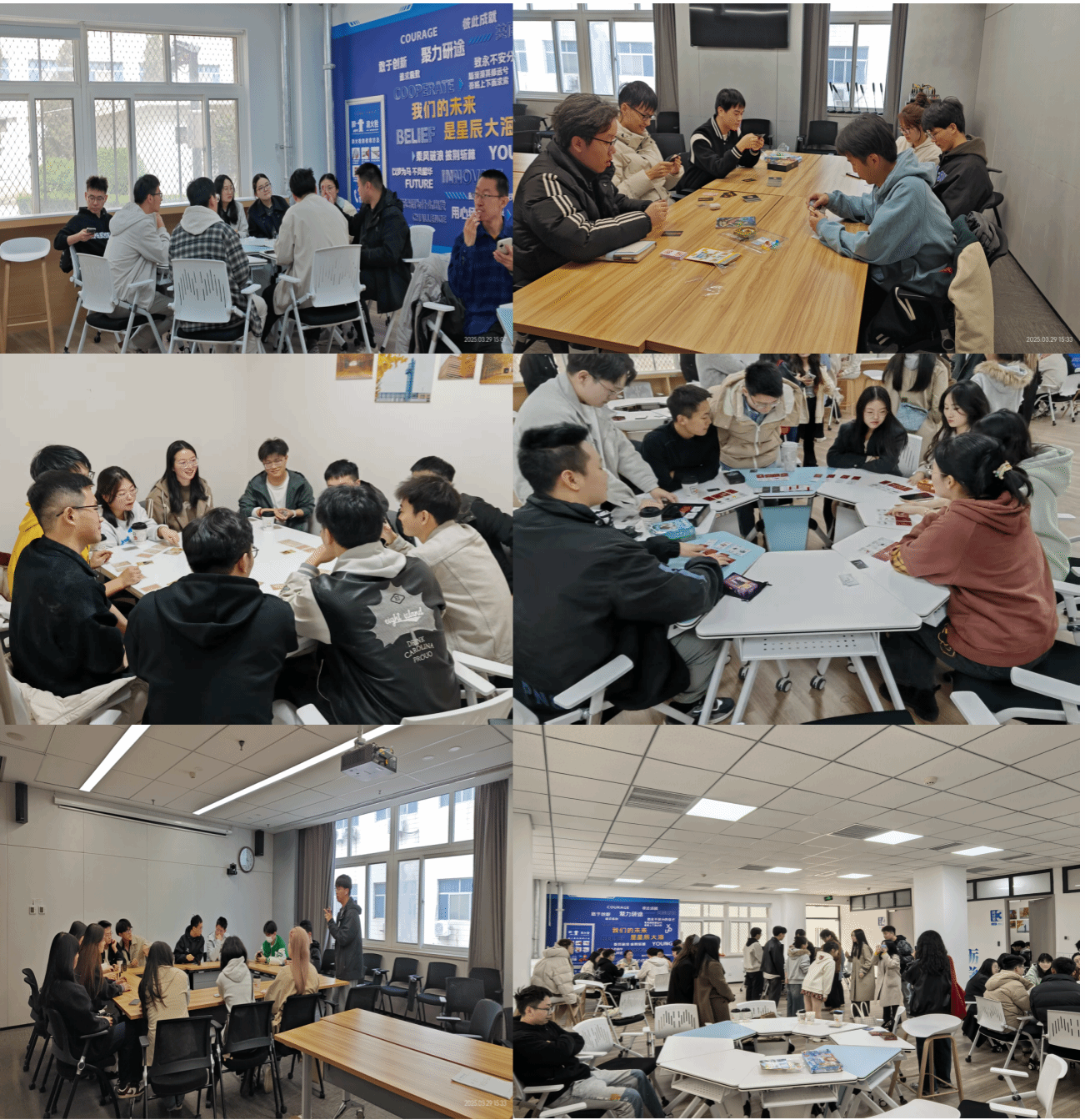 活动初篇,是热场小游戏的温馨序曲,同学们在“你画我猜”等热场小游戏中,增进了对彼此的了解,在默契的配合中,拉近了心灵的距离。大家化身“社牛达人”,主动介绍自己,诙谐的互动让欢声不断。在自由交流的桌游时光,“UNO”的缤纷卡牌对决引发策略较量,“狼人杀”的烧脑推理考验逻辑与演技,“德国心脏病”的急速拍铃挑战反应极限,“猎巫镇”的悬念反转让人拍案叫绝,跨学科的奇妙碰撞让现场惊喜连连,或沉浸于角色扮演、或专注于逻辑推理、或享受着轻松氛围,互动频繁、交流深入,现场气氛热烈。大家相聚一堂,在奶茶的香甜、游戏的欢愉与志趣相投的互动中结交深厚的友谊。