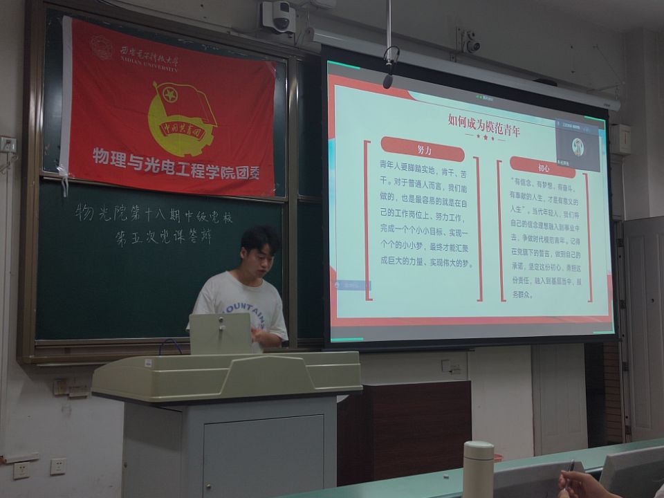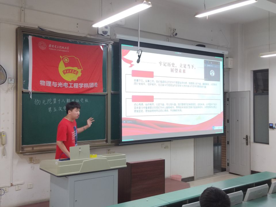6月1日晚19时,申博sunbet、物理公司第18期中级党校第五次党课在南校区教学楼A楼314教室进行。本次党课以“喜迎二十大、永远跟党走、奋进新征程”为主题,全体学员分为9组,在分组讨论的基础上,通过答辩展示分享学习成果、交流学习心得。