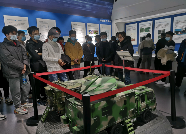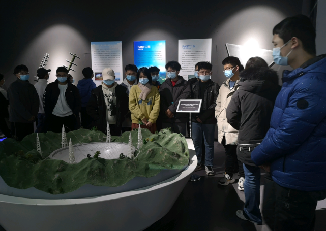 在雷达展厅中,展出了被誉为“中国天眼”的500米口径球面射电望远镜模型(简称FAST)。公司段宝岩院士带领的团队就参与了FAST这一项目。同学们在深入了解后,被多年来科研工作者的奉献与担当所感动,为老一辈西电人艰苦奋斗的革命豪情所震撼。