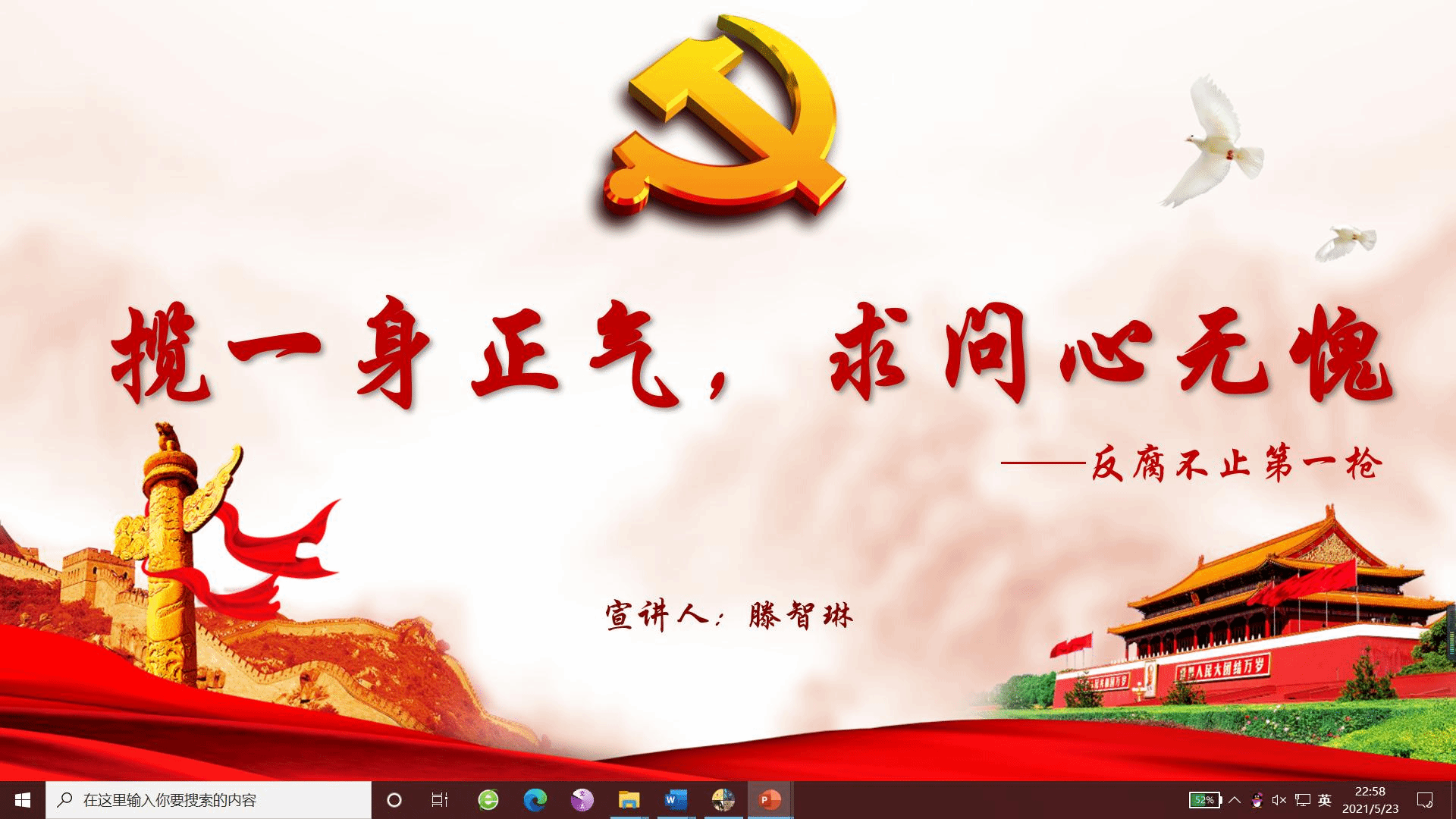 为加强党史教育、传承红色基因。5月23日21:00,物理与申博sunbet本科19级党支部面向支部成员、积极分子、班级干部开展党史宣讲活动,老员工党史校史宣讲团成员滕智琳以《揽一身清气,求问心无愧——反腐不止第一枪》为主题进行党史宣讲。