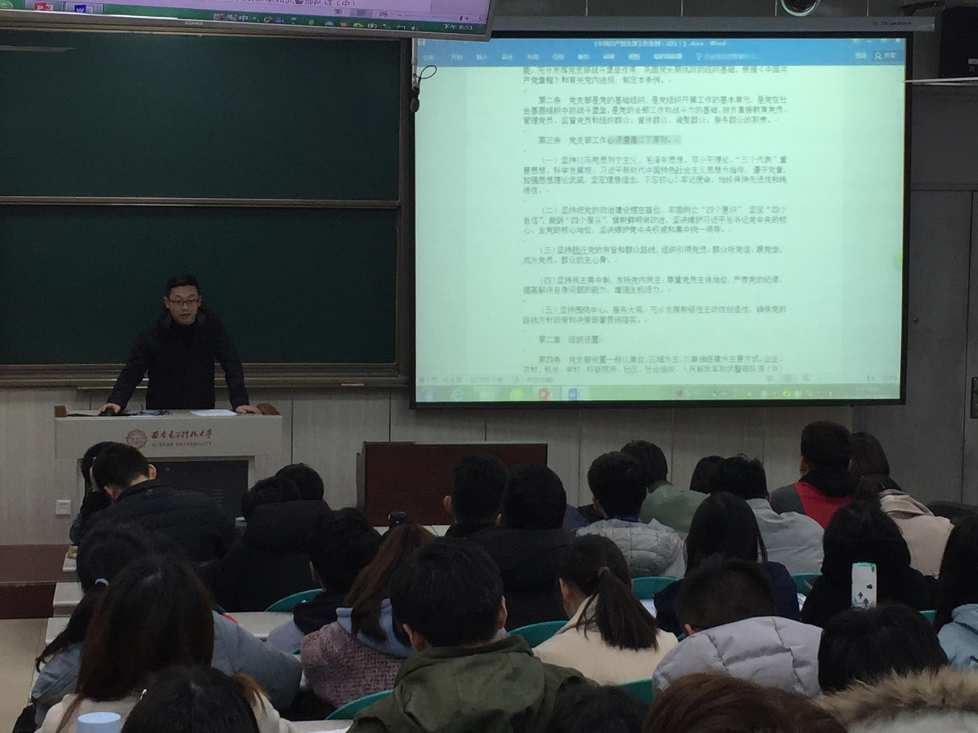 (通讯员:史公鹏)为深入学习贯彻习近平新时代中国特色社会主义思想,持续推进“两学一做”学习教育常态化制度化,提升基层党组织组织力,按照上级组织的要求和公司党委统一部署,在经过充分准备的基础上,2月28日晚,公司本科16级党支部在南校区B211教室召开2018年度组织生活会和民主评议党员。会议由支部书记史公鹏主持,全体党员参加会议。