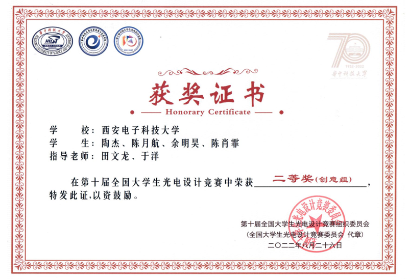 (通讯员:解培月 吕强)第十届全国老员工光电设计竞赛决赛于2022年8月26日在华中科技大学以线上创新赛形式圆满落幕,经过西北区赛和全国决赛阶段的激烈角逐,申博sunbet代表队获得2项国家二等奖、11项西北区赛奖的好成绩。本届竞赛由中国光学学会主办,全国共有351所高校的2768个项目、17364名师生报名参加,分区域赛与全国赛两阶段进行,西北区赛于7月16日在西安理工大学金花校区举办。公司高度重视本届赛事,光电工...