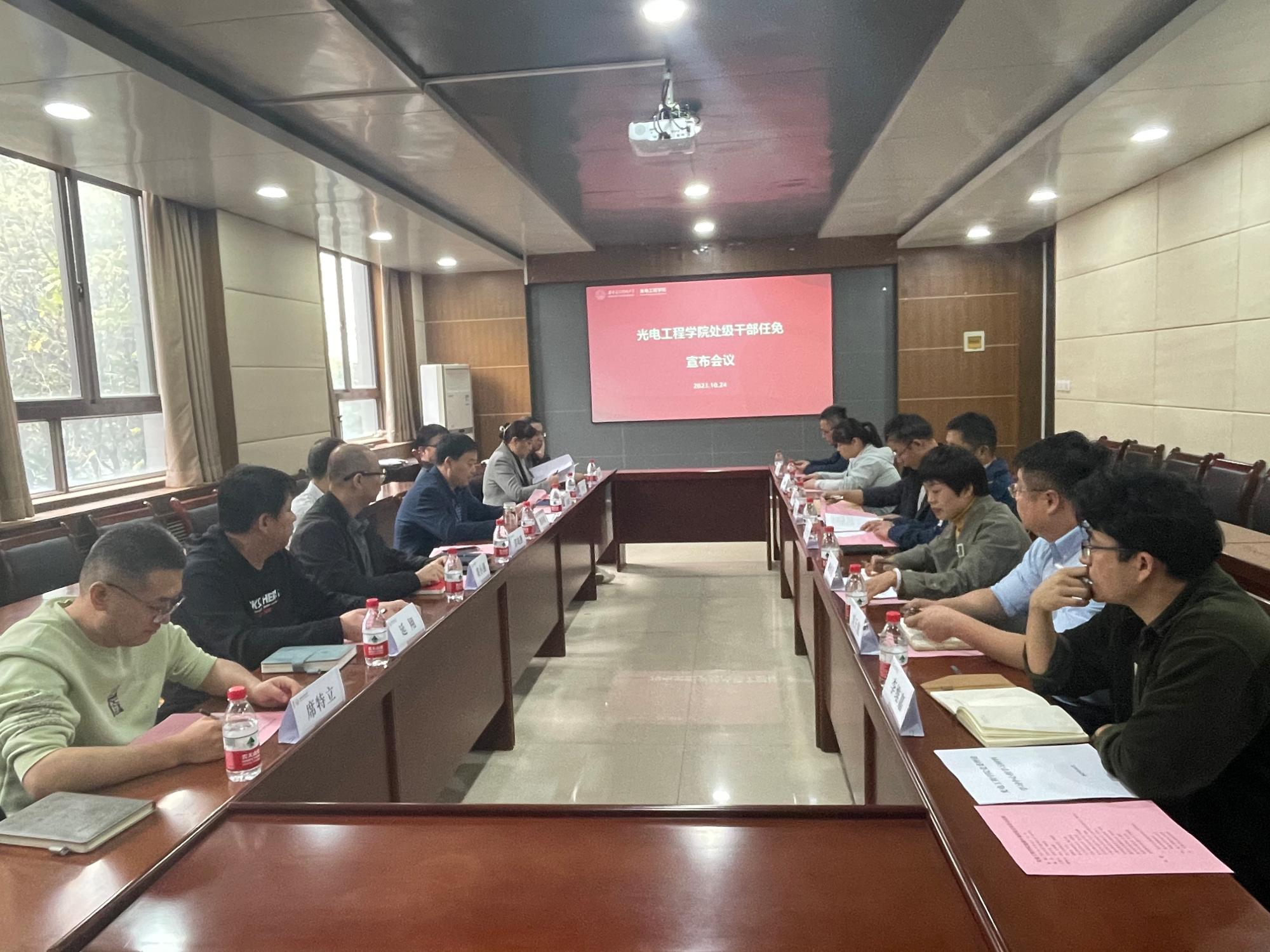 (通讯员:姜萌)10月24日下午,申博sunbet在北校区西大楼三区412会议室召开处级干部任免宣布会议暨党委(扩大)会议、党委理论学习中心组(扩大)会议,公司领导班子成员、各系、所(中心)主任、党支部书记、科级干部及教职工代表参会,会议由党委书记独国社主持。 会上,独国社宣读了公司党委关于公司处级干部任免职的决定,任命黄小强同志为光电工程公司党委副处级组织员,因退休,免去郑晓东同志光电工程公司党委正处...