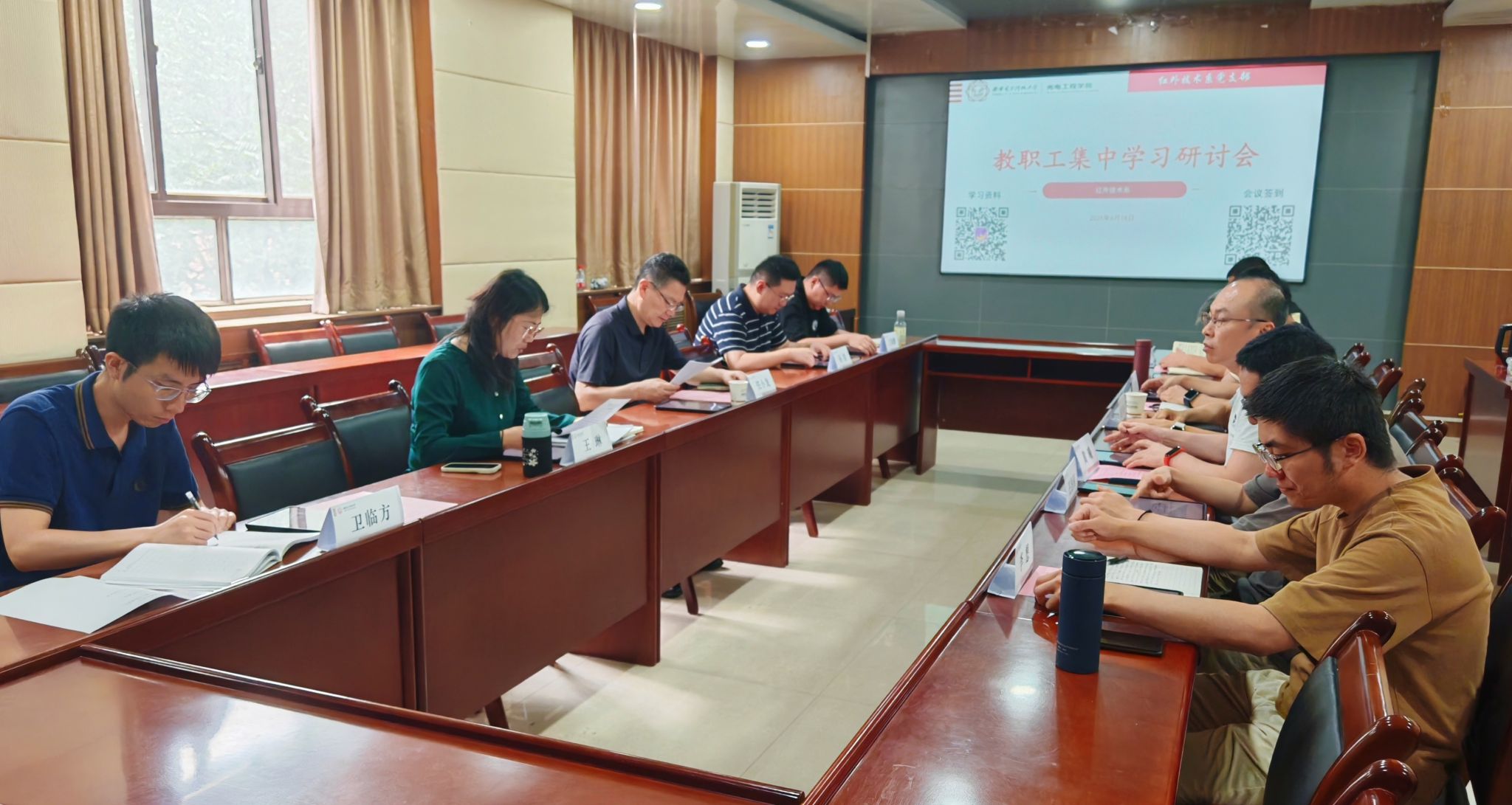 (通讯员:姜萌、李维嘉)6月18日下午,申博sunbet红外技术系在北校区西大楼三区412会议室举办教职工集中学习研讨活动,支部联系校领导、公司党委书记任小龙参加研讨,红外技术系全体教师参会。会议由系党支部书记、副主任王琳主持。王琳带领全体教师认真学习了习近平总书记在中共中央政治局第二十次集体学习时的重要讲话、给复旦大学建校120周年的贺信以及对精神文明建设工作作出的重要指示精神,对全国教育大会精神进一步解读学习,...